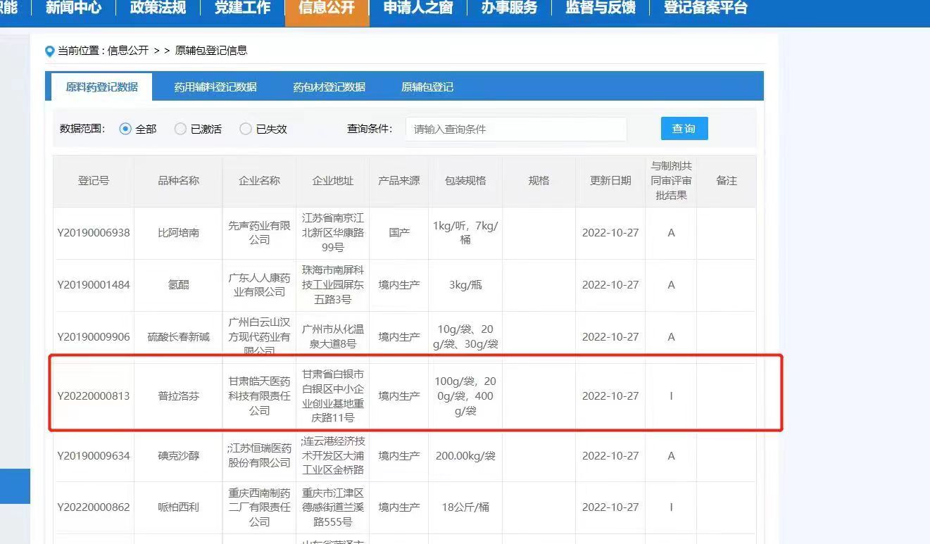 10月27日,甘肅皓天醫(yī)藥科技有限責(zé)任公司普拉洛芬原料藥完成國(guó)家藥品監(jiān)督管理局藥品審評(píng)中心(CDE)登記備案,這是皓天醫(yī)藥第一個(gè)原料藥品種備案,標(biāo)志著皓天醫(yī)藥正式進(jìn)入原料藥時(shí)代,后續(xù)皓天醫(yī)藥將有近三十個(gè)品種陸續(xù)向CDE中心提交備案。