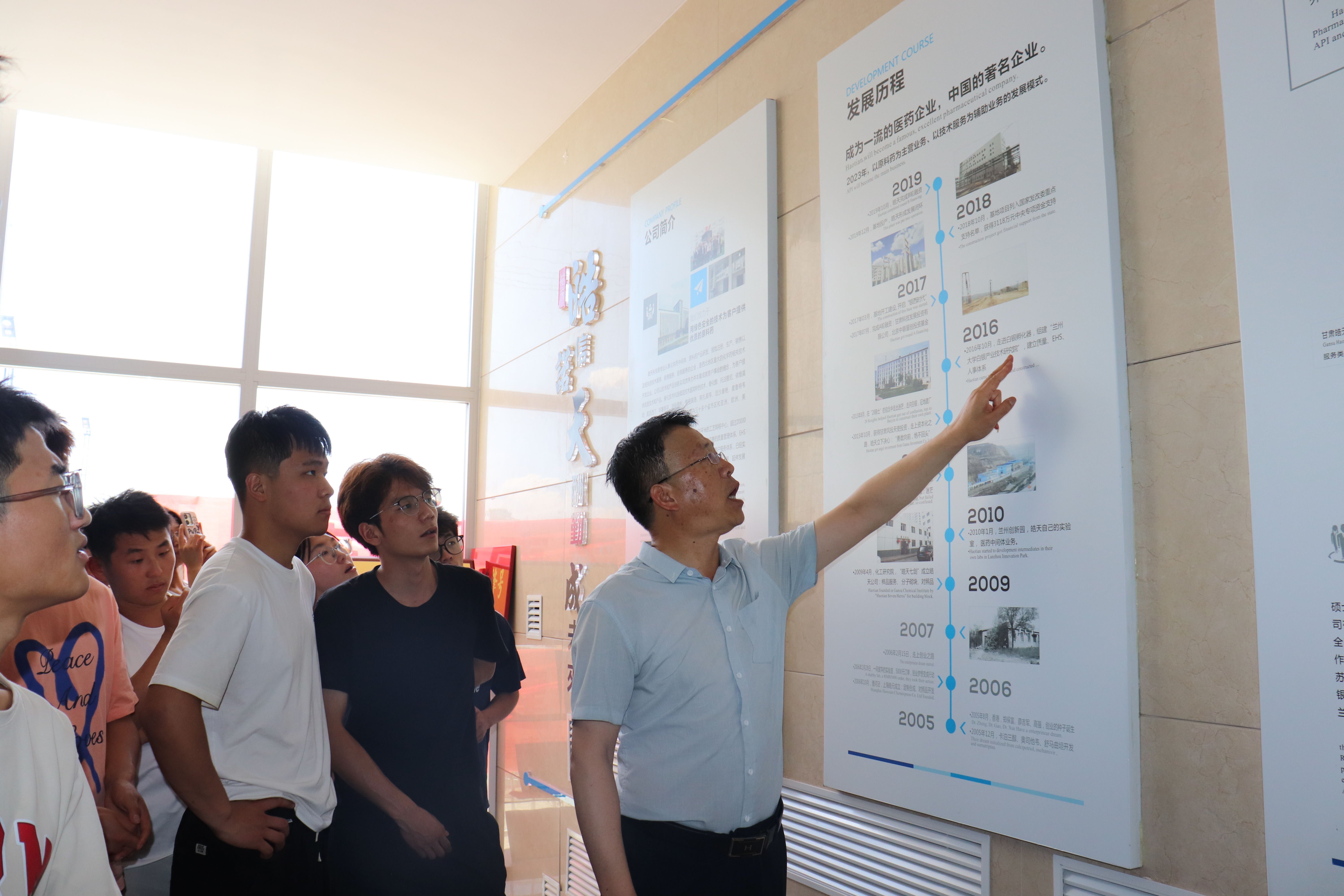 同學(xué)們首先步入皓天科技的一樓大廳,這里不僅是公司的門(mén)面,更是展示企業(yè)風(fēng)采的窗口。在這里,皓天醫(yī)藥工會(huì)主席楊青熱情地迎接了師生們,并向他們?cè)敿?xì)介紹了公司的輝煌成就、發(fā)展歷程以及主營(yíng)業(yè)務(wù)。通過(guò)楊主席的生動(dòng)講解,同學(xué)們對(duì)皓天科技有了更加深入的了解。